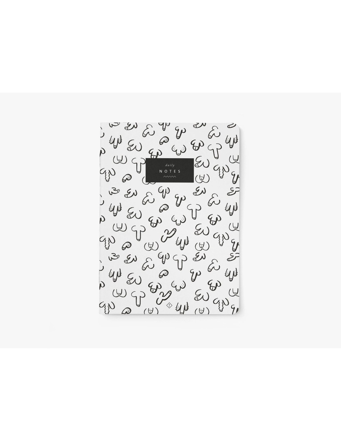 Cuaderno tamaño A5 grapado (con grapas especialmente duras y planas). Cubiertas de cartulina natural resistente y mate de 300 g/m². 40 hojas lisas en color crema de 80 g/m². Marca Typealive.