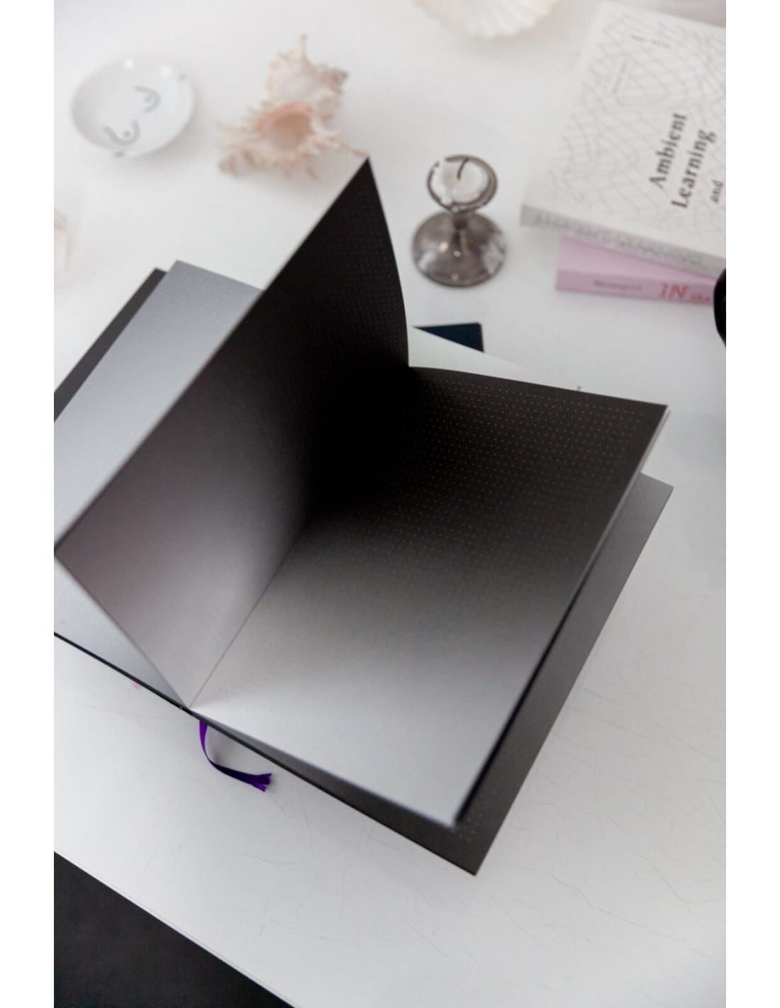 Tómate un descanso del color y simplifica tu toma de notas con los degradados en blanco y negro de este hermoso cuaderno.