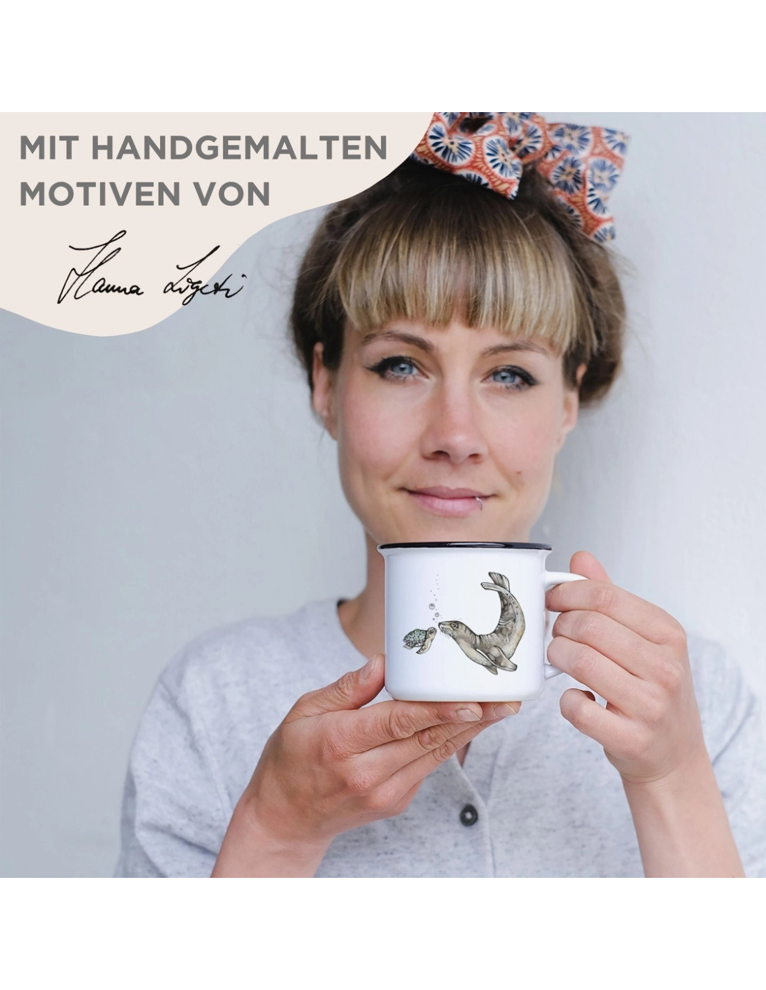 Taza de cerámica de alta calidad con 250 ml. de capacidad. Apta para microondas y para lavavajillas. Dibujo impreso a mano en Alemania. Se presenta en caja. Artículo de ilustradora. Marca Ligarti.