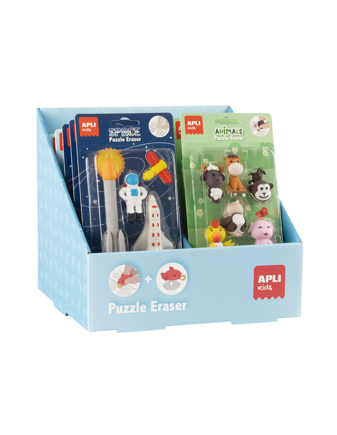 Estas gomas no sólo borran, también se pueden desmontar y volver a montar como un puzle, lo que las convierte en un pequeño juguete de manipulación además de una herramienta escolar práctica. Una propuesta ideal para fomentar la motricidad fina, la creatividad y el juego libre, a la vez que acompañan las tareas escolares de forma divertida.