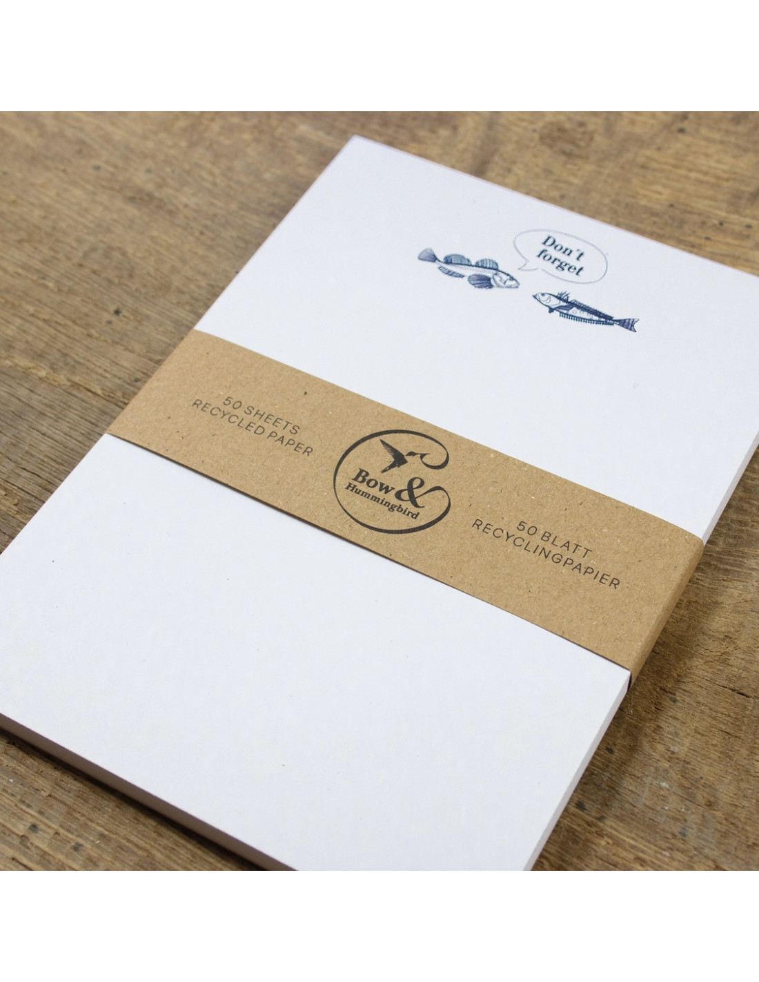 Bloc de notas tamaño A6 con 50 hojas de papel reciclado, impreso con tintas orgánicas veganas a base de aceite vegetal y un respaldo resistente de cartón reciclado. Se presenta con faja también de papel reciclado. Artículo de ilustradora. Hecho en Alemania. Marca Bow & Hummingbird.