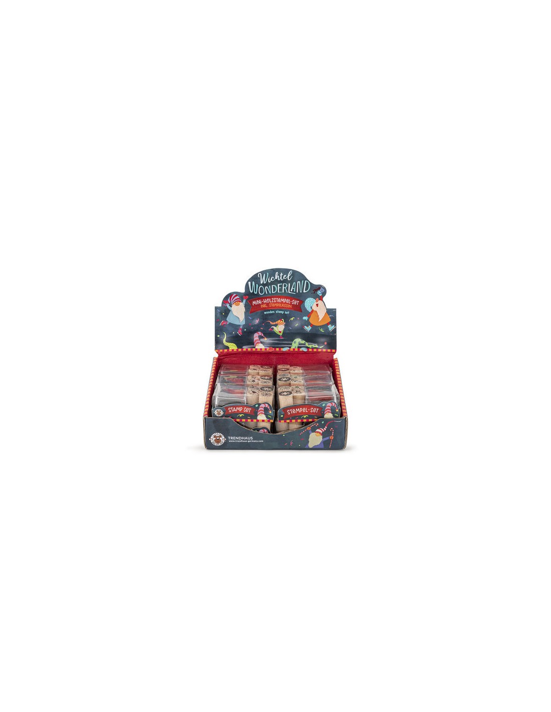 Set de 4 sellos de madera con motivos navideños y un tampón de tinta negra y roja. Ideal para decorar tus postales o para manualidades. Marca Trendhaus.