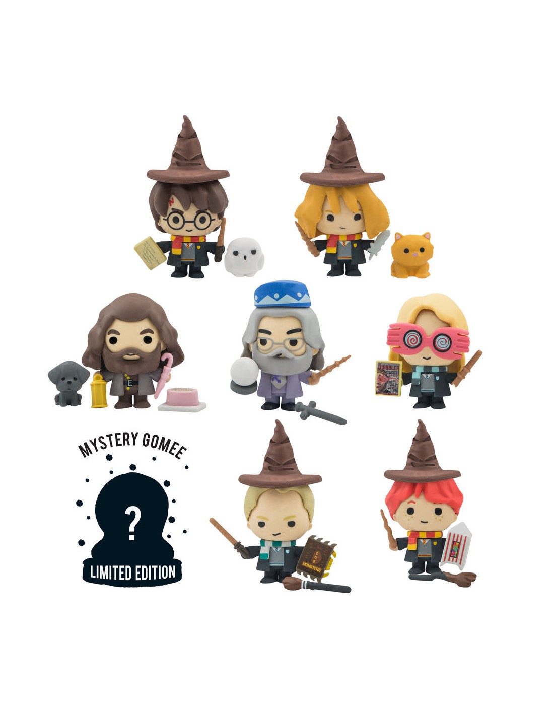 Goma de borrar desmontable de un personaje sorpresa de la saga de Harry Potter. Hay 8 diferentes y se pueden combinar entre ellos. Se presenta desmontada y en caja de cartón. Licencia oficial de Harry Potter para Gomee. Marca Cinereplicas.