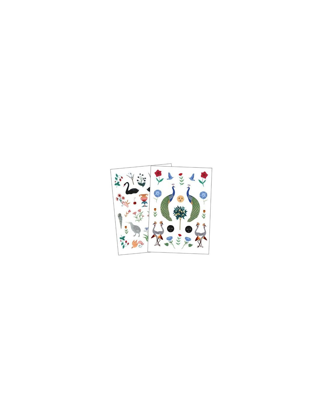 Set de 2 hojas de pegatinas de vinilo con motivos de animales y florales diseñadas por Brianda Fitz James Stuart. Resistentes al agua. Marca Tantanfan.