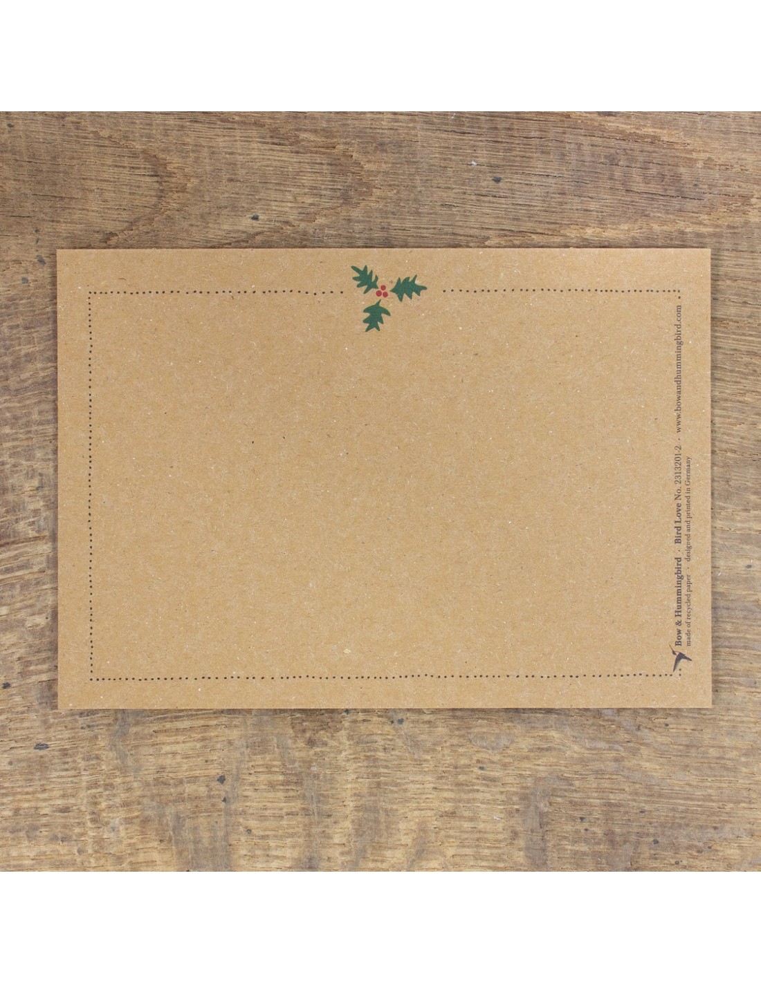 Postal de papel reciclado en color marrón natural especialmente resistente de 450 g de alta calidad y elegante con sobre autoadhesivo en color vino hecho de papel de silvicultura sostenible. Además, está grabado con una ligera estructura de costillas que le da una textura especial. Artículo de ilustrador. Marca Bow & Hummingbird.